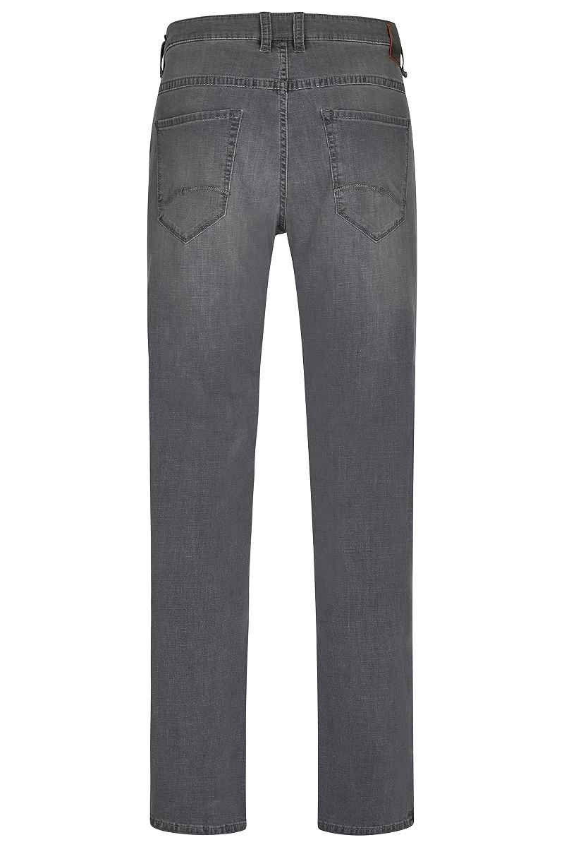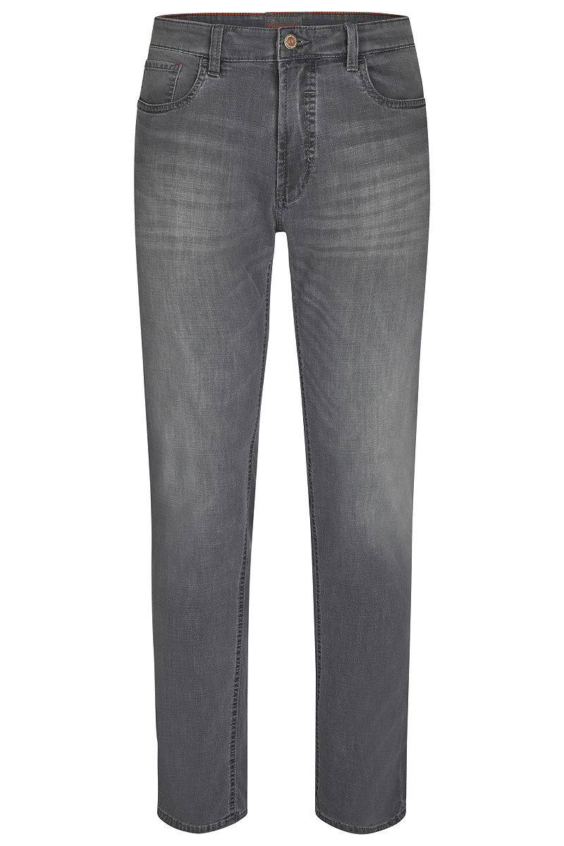 In der Frühjahr-/ Sommerkollektion von hattric findest Du das Modell Ultra Light Denim Harris. Sie ist schmal geschnitten und im modernen 5 Pocket Stil designt. Den trendigen Look der Herren Jeans ergänzt die moderne Used-Waschung. Hergestellt wird die Herren Jeans ressourcenschonend und nachhaltig. Sie setzt sich zu 72 % aus Baumwolle, zu 26 % aus Polyester und zu 2 % aus Elasthan zusammen. Das verwendete Polyester stammt aus recyceltem Material. Das Tragegefühl der hattric Jeans ist sehr angenehm, die Bewegungsfreiheit ist groß. Mit einer Fußweite von 36 cm hast Du ausreichend Bewegungsfreiheit.