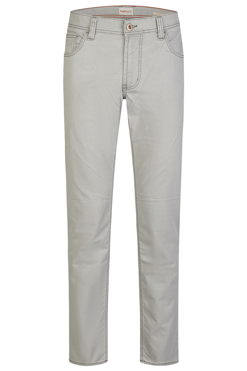 Der kernige Griff und die ganz leicht strukturierte Stoffqualität sind nur einige der Pluspunkte, die diese hattric Hose aus Baumwolle mit kleinem Elasthananteil mit sich bringt. Die Herrenhose hat ein schlanke Passform, ist aber durch Comfort Stretch dennoch sehr bequem und garantiert ein großes Maß an Bewegungsfreiheit. Mit einem coolen Shirt passt die hattric Hose perfekt in die Freizeit, sie macht aber auch, mit einem klassischen Hemd kombiniert, eine gute Figur im hektischen Büroalltag. Der pflegeleichte und strapazierfähige Stoff ist äußerst hautfreundlich und trägt sich auch bei hohen Temperaturen angenehm. Schöne Details der 5-Pocket-Hose sind die Stickereien auf den Gesäßtaschen.