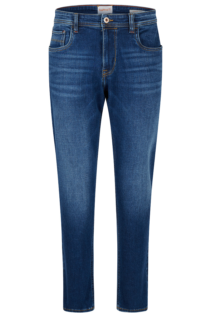 Die 5-Pocket Herrenhose Harris aus der Herbst/Winter Kollektion von hattric überzeugt auf den ersten Blick mit einem stylischen Look. Hergestellt aus einem Materialmix aus 95 % Baumwolle, 5 % Polyester und 1 % Elasthan ist die hattric Jeans mit Stretchkomfort sehr bequem und dennoch formstabil. Zusätzlich verbessert wird der hohe Tragekomfort von der Modern Fit-Passform. Denim verleiht der 5-Pocket-Herrenhose zudem einen kernigen Griff und macht sie sehr robust. Die strapazierfähige hattric Jeans bietet Dir mit ihrer authentischen Used-Waschung zudem eine stylische Optik. Den modernen Look kombinieren aufgesetzte Gesäßtaschen mit aufwendigen Details. Außerdem hat die Herrenhose Einschubtaschen mit zusätzlicher Coinpocket und Nieten-Taschensicherung, die Platz für Schlüssen und Kleingeld bieten.