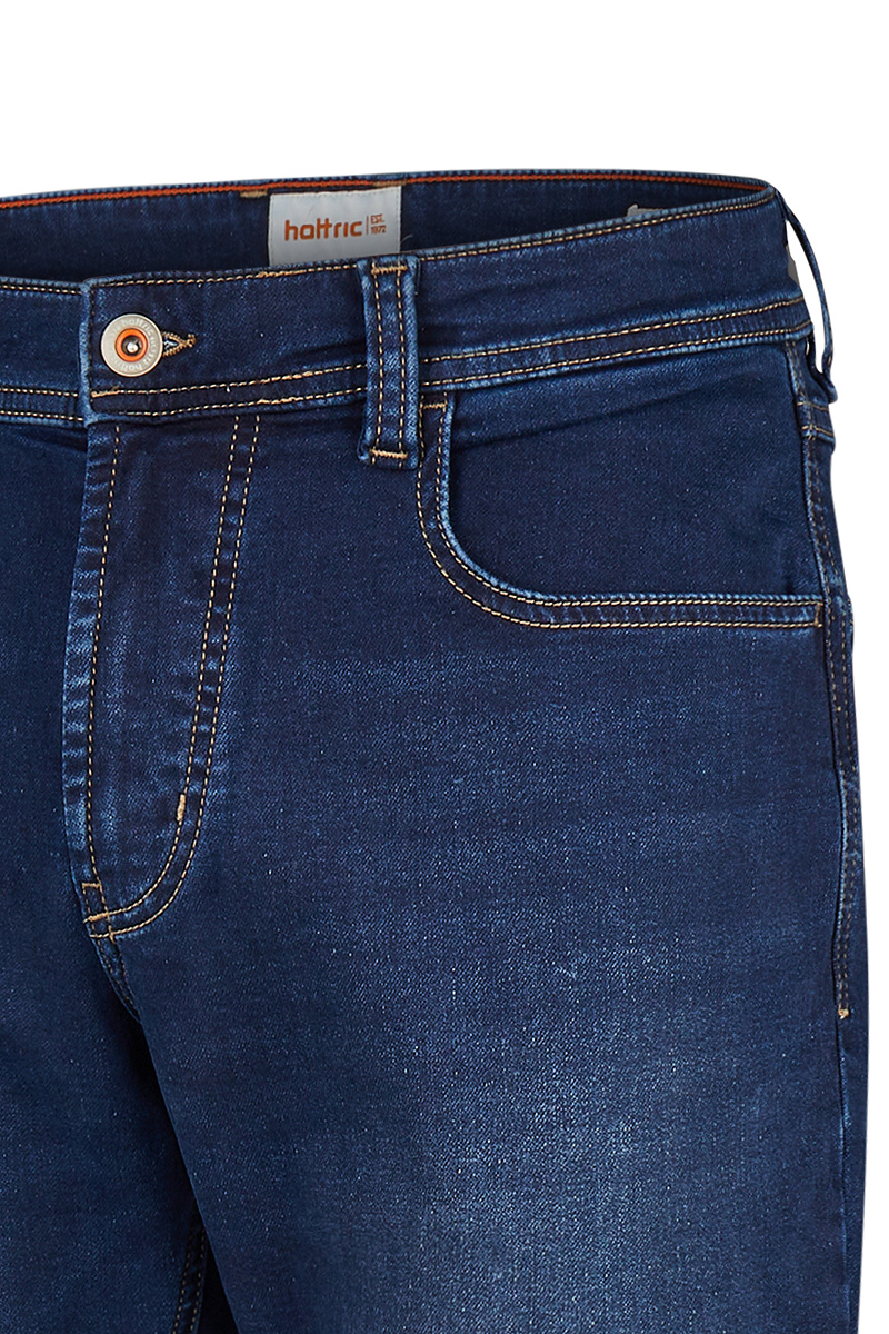 Mit dieser 5-Pocket Herrenhose in der bequemen Passform Modern Fit können Herbst und Winter ruhig kommen, denn die hochwertige Qualität aus Knitt Denim schenkt Dir einen erstklassigen Tragekomfort und überzeugt mit einem angenehm weichen Griff. Das ist unter anderem dem raffinierten Materialmix aus Baumwolle, Polyester und Elasthan zu verdanken. Der sorgt auch dafür, dass die hattric Hose alle Deine Bewegungen mitmacht und trotzdem formstabil bleibt. Details wie die aufgesetzten Gesäßtaschen und die Einschubtaschen mit extra Coinpocket verleihen der Herrenhose einen trendstarken Look. Abgerundet wird das markante Design durch lässige Nieten, welche die Taschen verstärken und zusätzlich als stylische Hingucker fungieren.