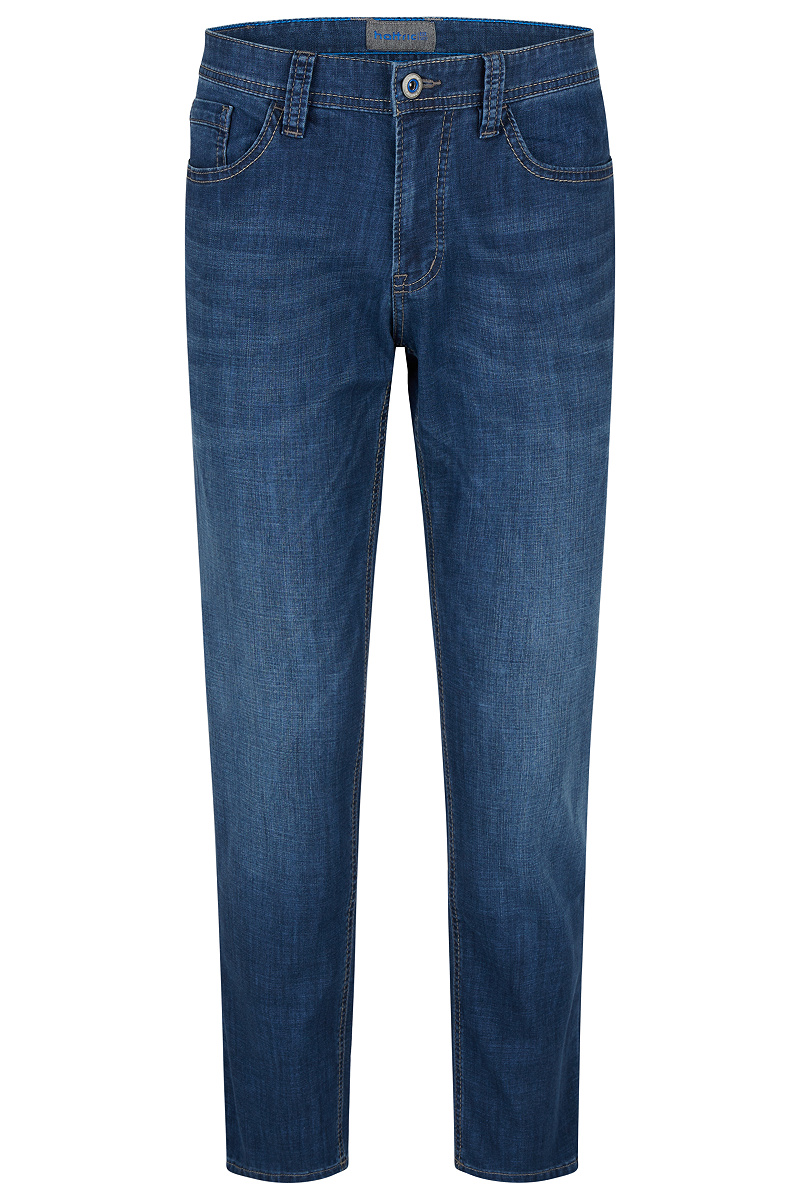 Mit der sportiven 5-Pocket Hunter Ultra Light im Regular Fit aus der Frühling/Sommer-Kollektion von hattric holst Du Dir eine vielseitig kombinierbare Herrenhose. Die hattric Jeans ist mit ihrer geraden Passform und dem Comfort Stretch besonders bequem und bietet Dir auch in der Freizeit optimale Bewegungsfreiheit. Die Baumwollmischung ist nicht nur elastisch und formstabil, sie bietet auch einen angenehmen Griff und ist strapazierfähig sowie pflegeleicht. Optisch punktet die hattric Jeans Herrenhose zusätzlich zu ihrem klassischen 5-Pocket-Stil mit aufwendigen Waschungen und modischen Kontrastnähten. Die Hunter Ultra Light bietet Dir mit zwei geschwungene Eingriffstaschen mit Münztasche und zwei aufgesetzten Gesäßtaschen zudem viel Platz für Schlüssel & Co.