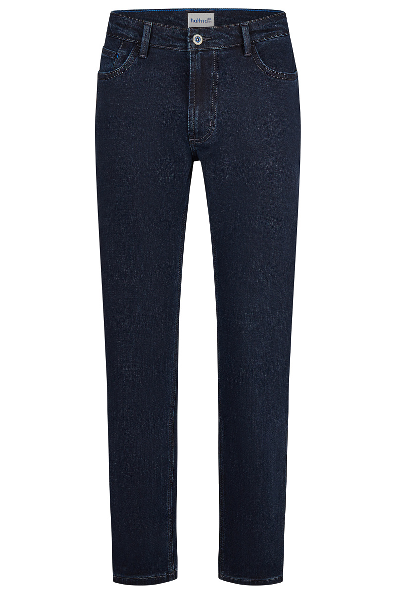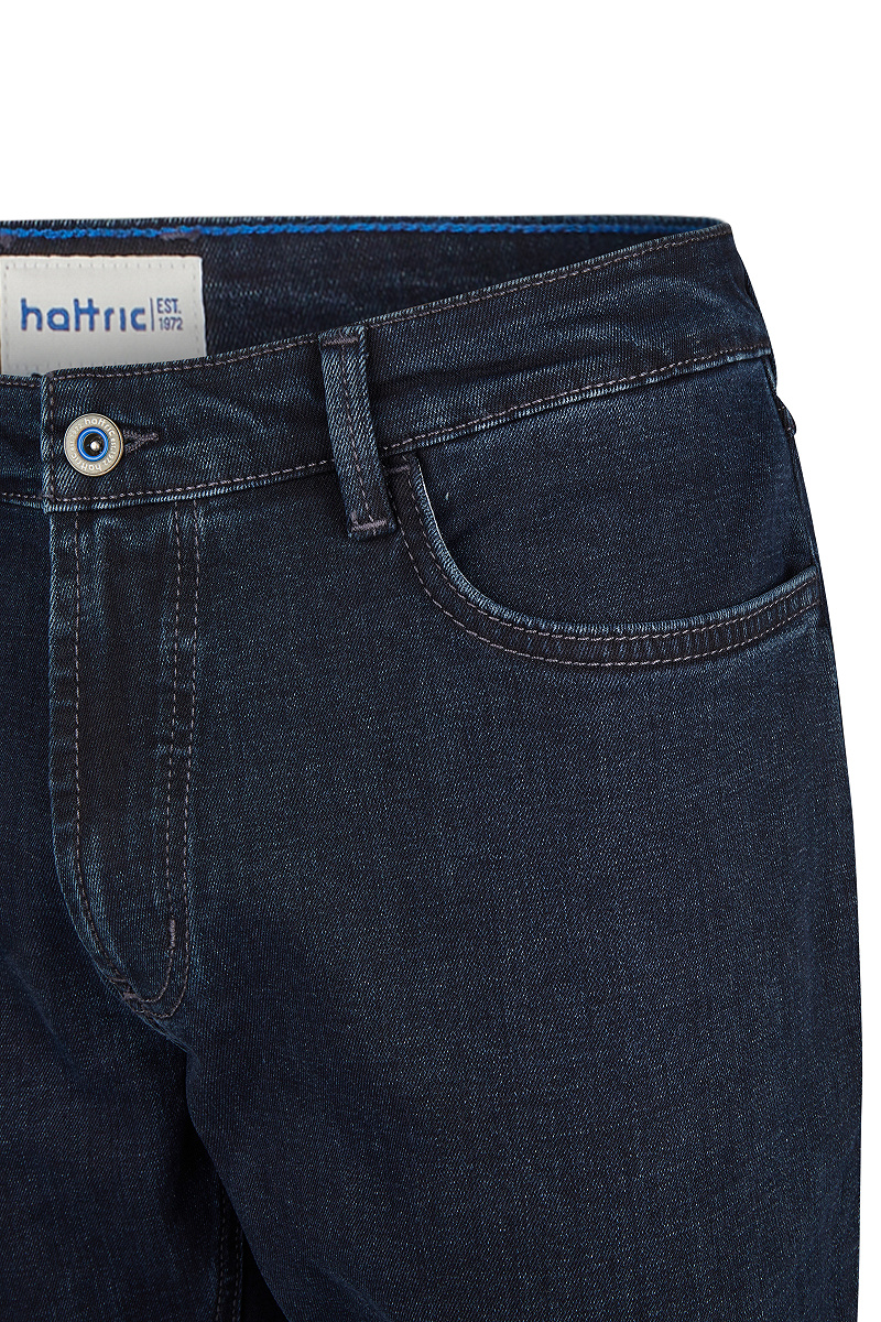 Die trendstarke hattric Jeans ist das ganze Jahr über ein perfekter modischer Begleiter und ungemein vielseitig. Sie sieht zu T-Shirt und Sneakers ebenso toll aus wie zu Sakko und Lederschuhen. Angefertigt aus Baumwolle, Polyester, Viskose sowie - für ein Extra an Tragekomfort und Bewegungsfreiheit - einem kleinen Anteil Elasthan, punktet sie mit Strapazierfähigkeit und einem kernigen Griff. Außerdem verfügt die Herrenhose über Einschubtaschen mit Coinpocket: Ein Merkmal, das bei Jeans auf keinen Fall fehlen darf! Selbstverständlich werden die Taschen durch die typischen Nieten verstärkt. De hattric Jeans kommt in der Passform Regular Fit daher und steht somit quasi jedem Mann.