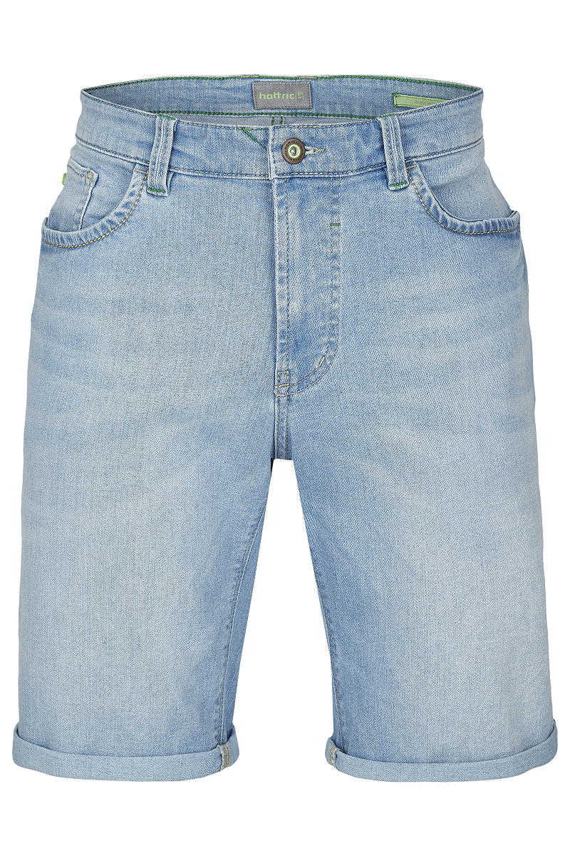 Trag diese lässige Herrenshorts, wenn Dir nach Spaß und Freiheit zumute ist. Dieses Kleidungsstück ist super-leger. Der Mix macht es hier eindeutig: Baumwolle, Repreve Polyester und Elasthan sorgen für guten Sitz in jeder Situation. Die Schrittlänge von 30 cm ist ideal für Deine Unternehmungen am Strand oder alle anderen Freizeitaktivitäten. Dieses Modell ist aus der Green-Kollektion, Du hast also eine nachhaltige Hose, die im 5-Pocket Denim Stil für einen modischen Sommer sorgt. Das spezielle Repreve®-Gewebe steht für ein Plus an Umweltbewusstsein. Repreve, das steht übrigens für ein neues Leben, denn für diese Hose wurden recyclete PET-Flaschen verwendet. Fortschritt: hattric Bermuda!