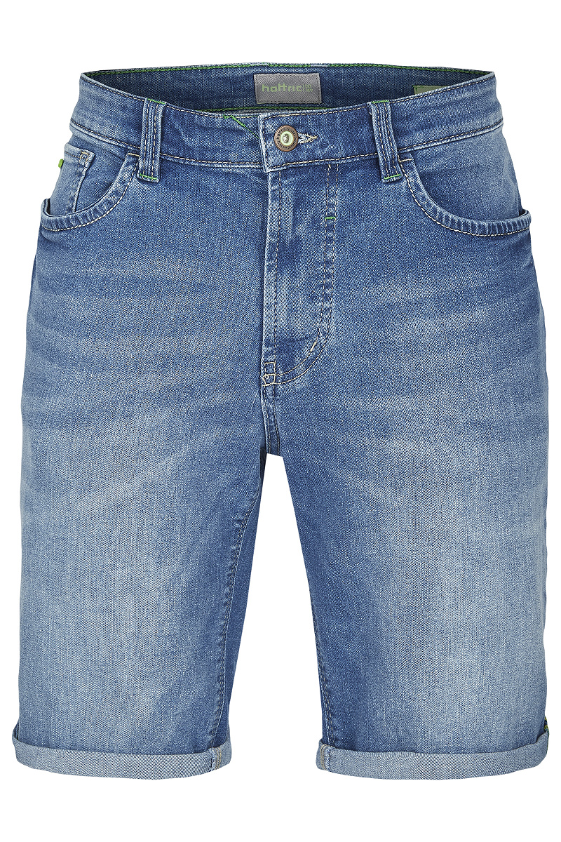 Trag diese lässige Herrenshorts, wenn Dir nach Spaß und Freiheit zumute ist. Dieses Kleidungsstück ist super-leger. Der Mix macht es hier eindeutig: Baumwolle, Repreve Polyester und Elasthan sorgen für guten Sitz in jeder Situation. Die Schrittlänge von 30 cm ist ideal für Deine Unternehmungen am Strand oder alle anderen Freizeitaktivitäten. Dieses Modell ist aus der Green-Kollektion, Du hast also eine nachhaltige Hose, die im 5-Pocket Denim Stil für einen modischen Sommer sorgt. Das spezielle Repreve®-Gewebe steht für ein Plus an Umweltbewusstsein. Repreve, das steht übrigens für ein neues Leben, denn für diese Hose wurden recyclete PET-Flaschen verwendet. Fortschritt: hattric Bermuda!