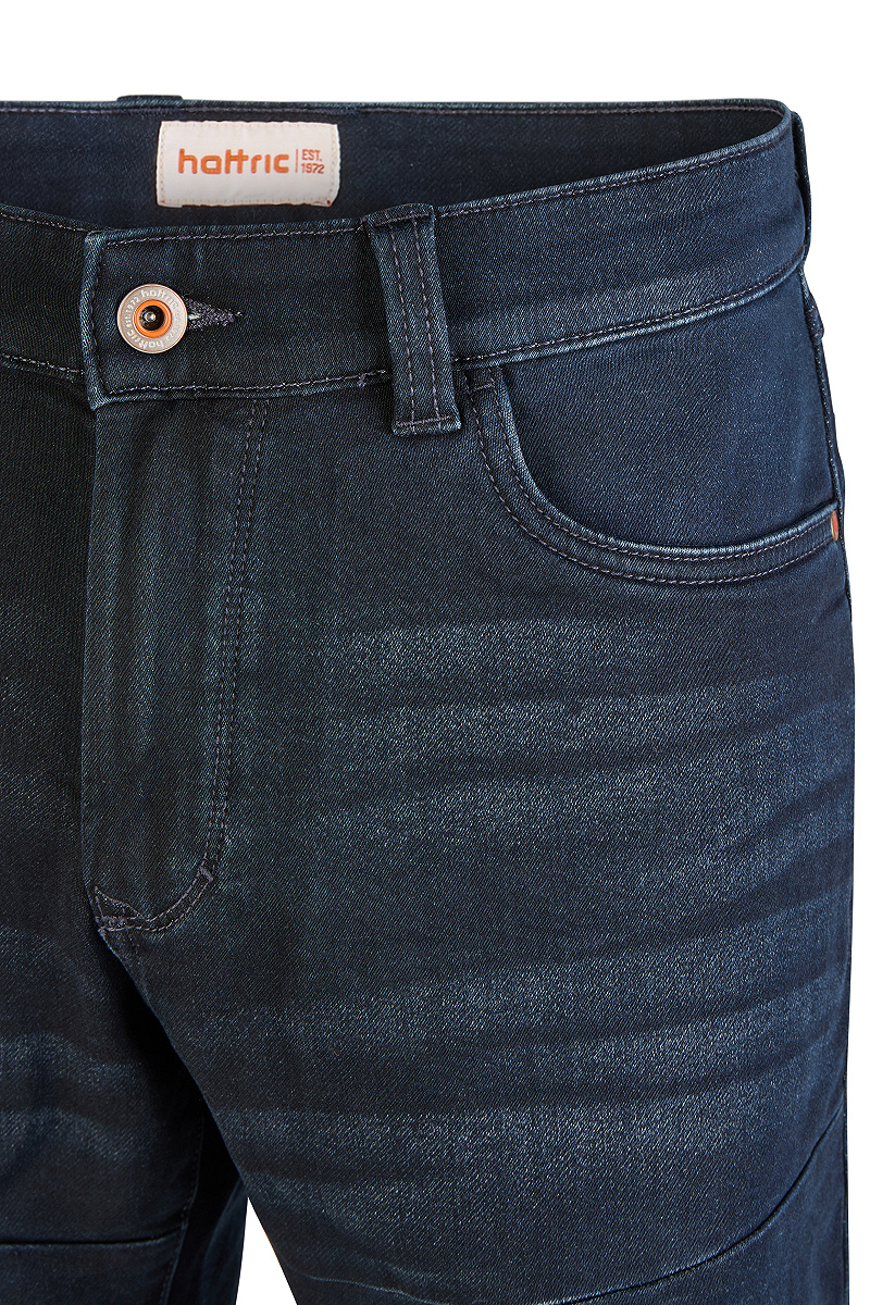 Diese 3/4 Herrenhose von hattric kombiniert authentische Denim-Optik mit strapazierfähiger formstabiler Qualität. Der Stretch-Anteil sorgt für angenehme Bewegungsfreiheit während das verkürzte Bein einen sportiven Akzent setzt. Ideal für aktive Tage mit Stil - funktional modern komfortabel.