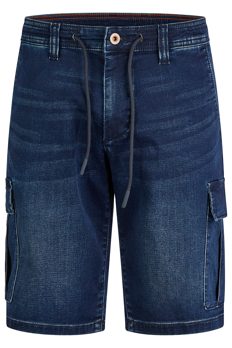 Die Cargo Bermuda im Jogg-Denim-Look ist eine Mischung aus lässigem Style und höchstem Komfort. Der weiche Griff und der elastische Stoff sorgen für angenehmen Tragekomfort, während die praktischen Cargo-Taschen und der Kordelzug zusätzlichen Komfort bieten. Die authentische Denim-Optik und die geknöpften Gesäßtaschen verleihen der Hose einen modernen Touch. Pflegeleicht und strapazierfähig, ist diese Bermuda ideal für den Sommer.
