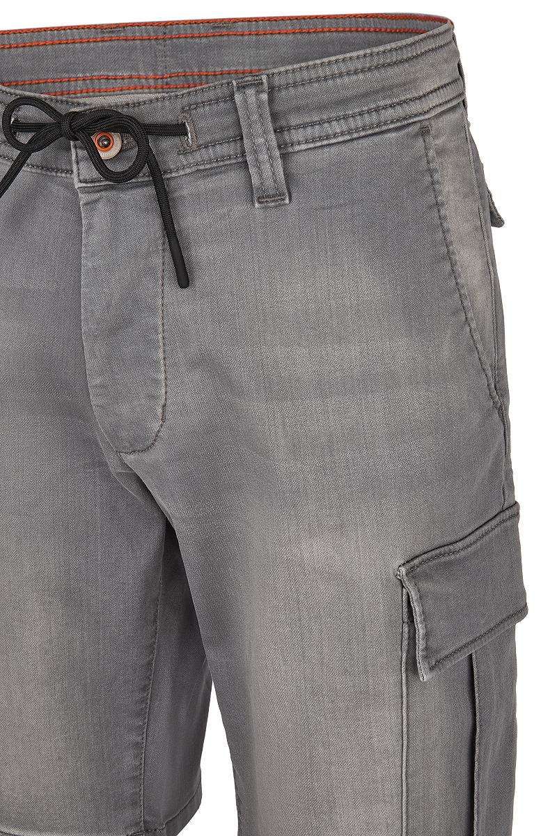 Die Cargo Bermuda im Jogg-Denim-Look ist eine Mischung aus lässigem Style und höchstem Komfort. Der weiche Griff und der elastische Stoff sorgen für angenehmen Tragekomfort, während die praktischen Cargo-Taschen und der Kordelzug zusätzlichen Komfort bieten. Die authentische Denim-Optik und die geknöpften Gesäßtaschen verleihen der Hose einen modernen Touch. Pflegeleicht und strapazierfähig, ist diese Bermuda ideal für den Sommer.