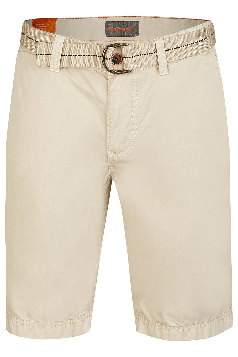 Die hattric Chino Shorts besteht aus reiner Baumwolle. Dadurch ist die Hose besonders hautfreundlich, atmungsaktiv und pflegeleicht. Zusätzlich besitzt sie einen angenehm weichen Griff und ist sehr strapazierfähig. Die Herren Chino Shorts stammt aus der Frühjahr- und Sommerkollektion und ist daher super für die wärmeren Tage geeignet. Durch die französischen Vorderhosentaschen wird ein schnelles und einfaches Eingreifen in die Tasche ermöglicht. Zusätzlich besitzt die Hose eine Uhrentasche. Der mitgelieferte Gürtel sorgt dafür, dass die Herrenhose angenehm sitzt und ist zusätzlich ein tolles Modeaccessoires.