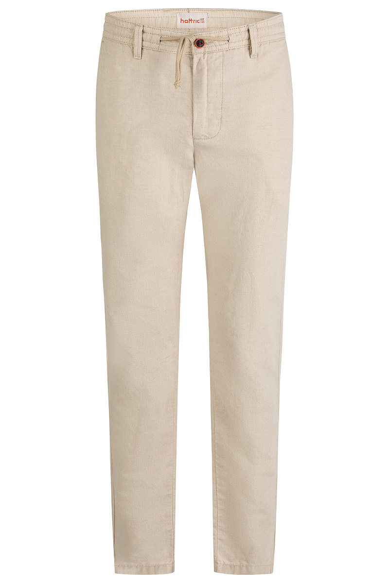 Mit der Chinohose Dan bist du für jede Gelegenheit perfekt gekleidet – ob im Büro oder in der Freizeit. Der leichte, atmungsaktive Leinenmix sorgt für einen angenehmen Tragekomfort, während der elastische Bund mit Kordelzug einen optimalen Sitz gewährleistet. Die seitlichen Eingriffstaschen bieten praktischen Stauraum, während die aufwendigen Details der Hose den modernen Look abrunden. Durch die pflegeleichte und knitterarme Eigenschaft ist die Chinohose besonders praktisch und einfach zu pflegen. Der verstellbare Bund sorgt für zusätzlichen Komfort, sodass du die Hose individuell anpassen kannst. Ideal für einen lässigen, aber dennoch eleganten Look – perfekt für Business und Freizeit!