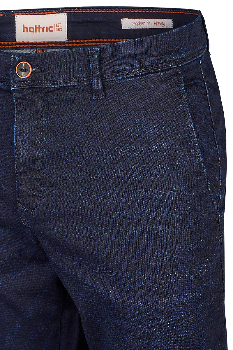 Die Chinohose Harvey von hattric überzeugt mit Stretch und authentische Denim-Optik. Mit seitlichen Eingriffstaschen und Paspeltaschen hast du immer alles griffbereit. Abgerundet wird das Ganze durch den weichen Griff. Diese Herrenhose bringt Style und Funktionalität perfekt in Einklang – typisch hattric.
