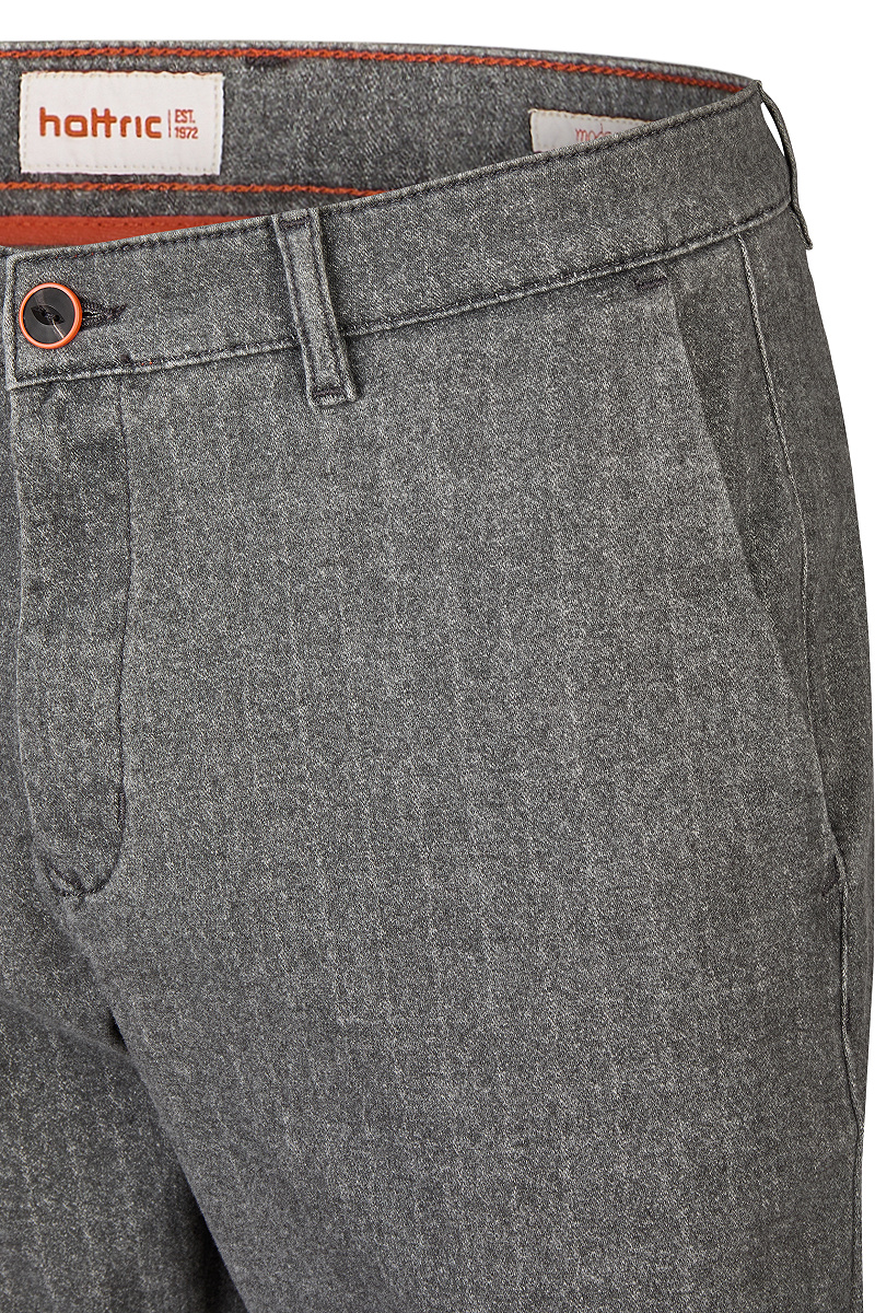 Die Chinohose Harvey von hattric kombiniert eine moderne Silhouette mit pflegeleichter Qualität. Das Strukturmuster verleiht dieser Herrenhose eine edle Note, während Stretch Bewegungsfreiheit bietet. Mit seitlichen Eingriffstaschen und Paspeltaschen ist die hattric Chinohose sowohl funktional als auch stilvoll – ein Must-have für den modebewussten Mann.
