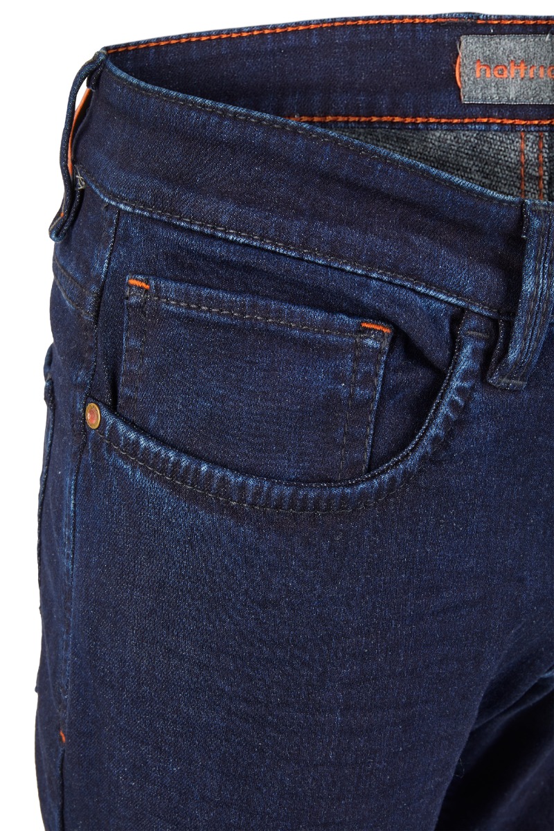 Mit der aktuellen Herbst-/ Winterkollektion bietet hattric diese stylische hattric Herrenjeans. Sie ist in angesagten Herbsttönen gehalten. Akzentuierte Highlights in Orange unterstreichen den modischen Look. Die auffällige Ringstruktur der Five-Pocket-Jeans ergänzt die Optik dieser hattric Jeans. Sie hat eine authentische Denim-Waschung und durch die aufgeraute, weiche Innenseite fühlt sich die Herrenjeans angenehm auf der Haut an. Sie ist in der modernen Passform Harris geschnitten. Die Fußweite der hattric Jeans liegt bei 36 cm. Mit einem Basic-Shirt entsteht ein dezenter und klassischer Look.