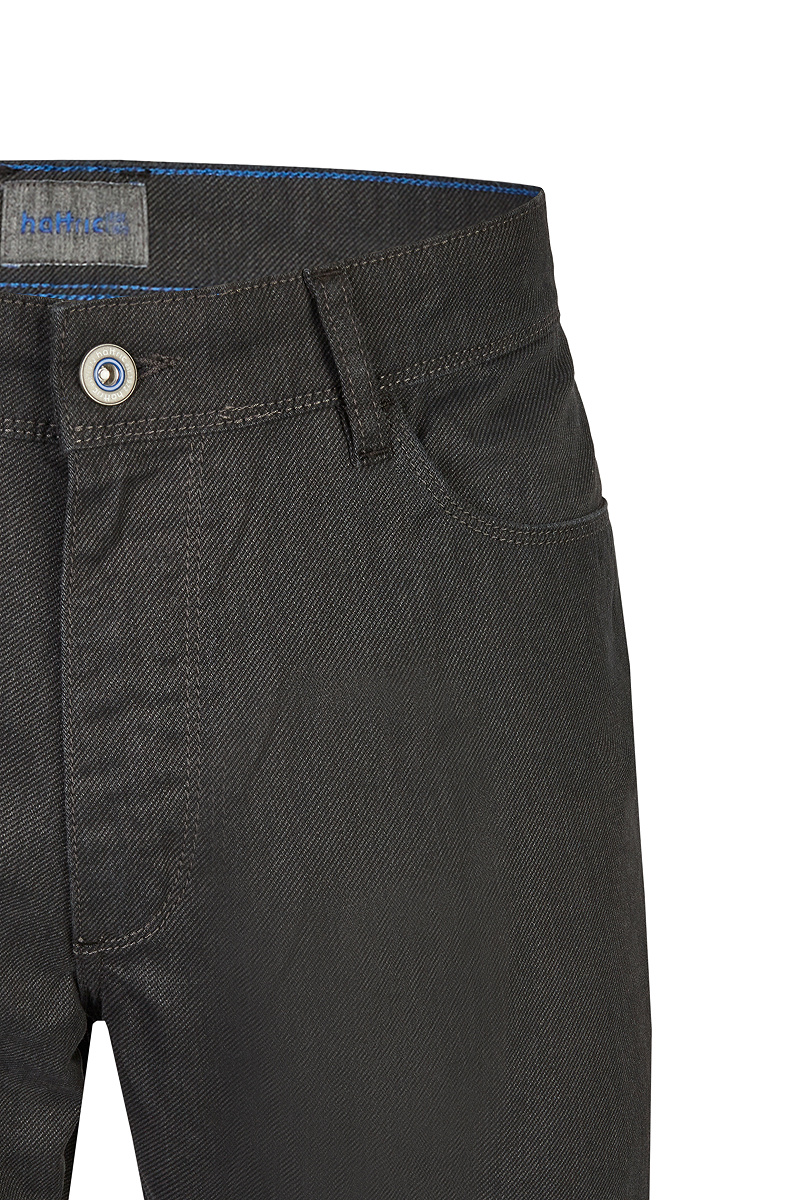 Mit der 5-Pocket-Hose Hunter bietet hattric die ideale Jeans für den Herbst und den Winter. Die Herrenjeans ist in einer modernen Passform geschnitten. Sie ist weich und angenehm auf der Haut zu tragen. Die Five Pocket Hose besteht aus einem innovativen Baumwoll-Viskose-Mix. Durch den Anteil an Elasthan ist sie bequem zu tragen. Optisch abgerundet wird die Herrenjeans der Herbst-/ Winterkollektion durch hochwertige Ausstattungsdetails. Mit der hattric Jeans bist Du immer gut gekleidet, ob im Büro oder im Alltag.