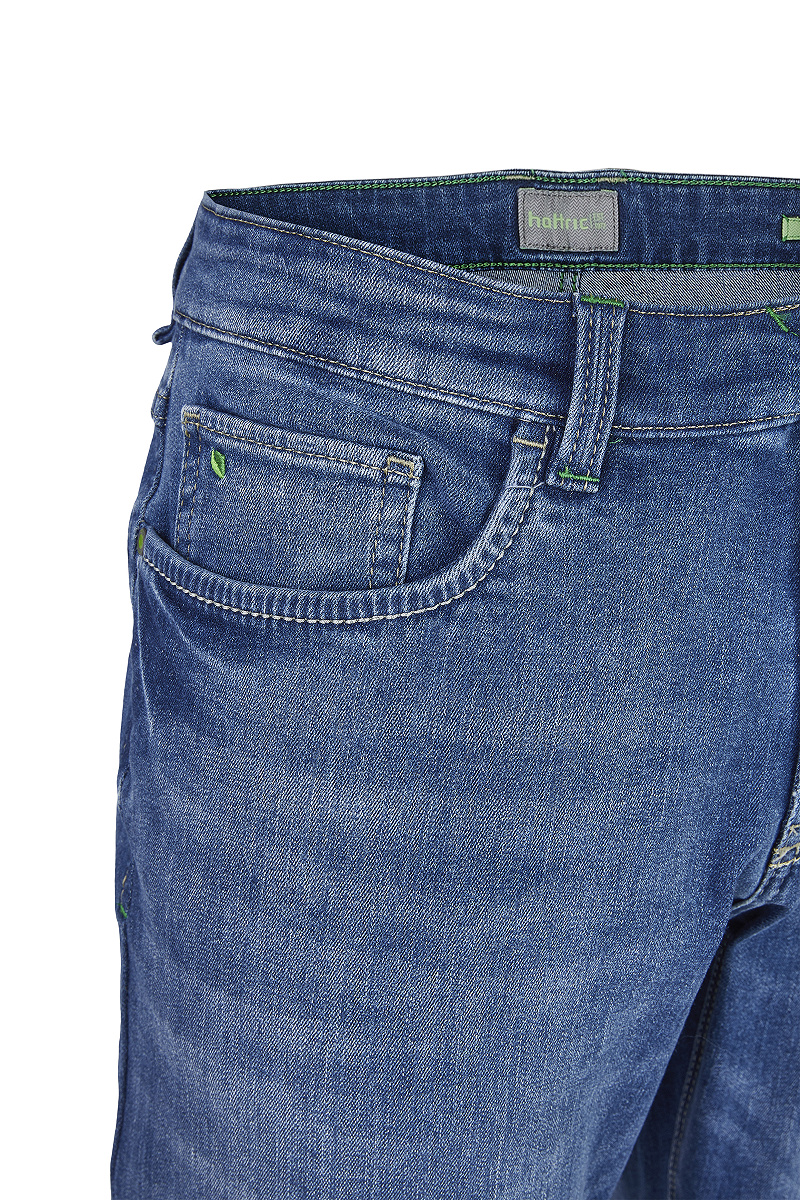 Die hattric Jeanshose Harris Repreve aus dem innovativem RepreveĀ®-Gewebe, ist eine nachhaltig produzierte Version der klassischen 5-Pocket Denim Herrenjeans. Der Materialmix aus 70% Baumwolle, 29% Repreve Polyester und 1% Elasthan lƤsst Dich nicht nur gut aussehen, sondern schützt zudem auch die Umwelt. Die modern konzipierte hattric Jeanshose in Schnittvariante Harris zeichnet sich durch die bequeme und dennoch kƶrperbetonte FuĆweite von 36cm mit schlankem Bein aus. Neben farblichen Akzenten in neongrüner Stickerei wird die Herrenjeans durch einen dezenten hattric Lederpatch und einen hochwertigen ReiĆverschluss komplettiert.
