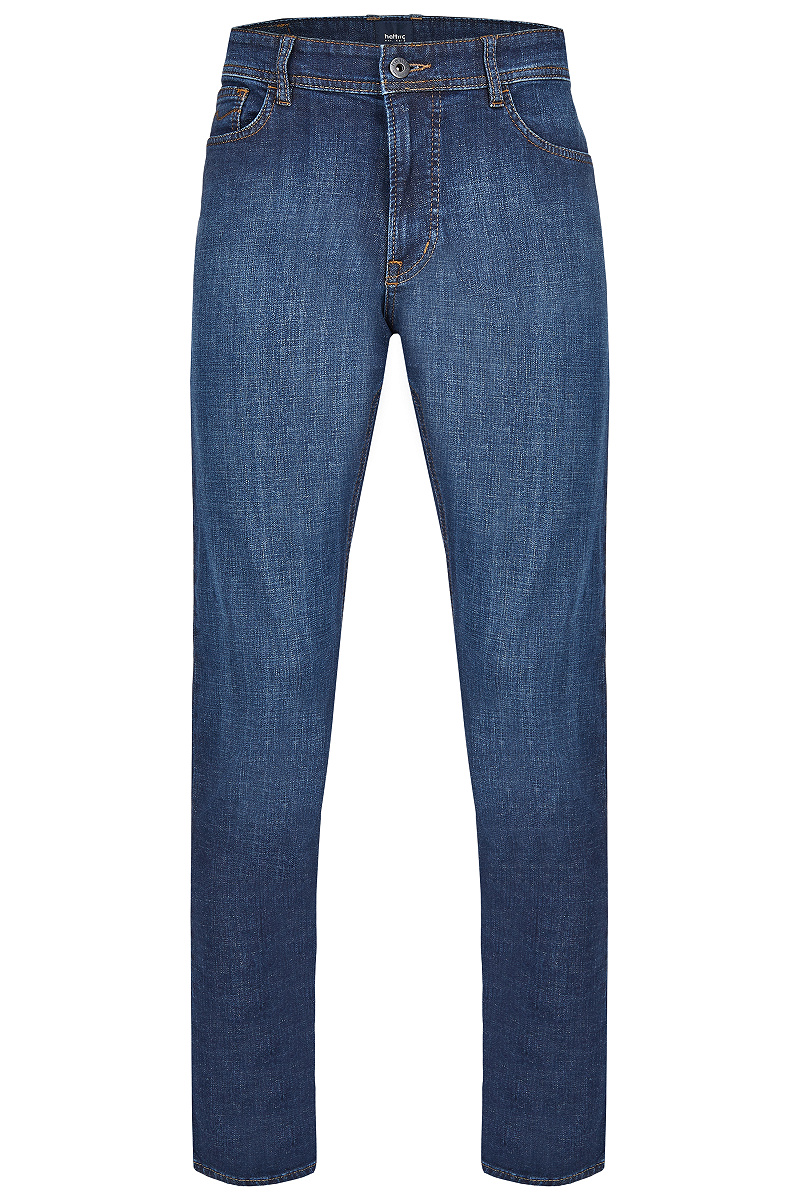 Mit dieser hattric Jeanshose Hunter aus der NOS (Never out of stock) Kollektion kommen Sie ganz bequem durch den Alltag. Diese Herrenjeans ist in authentischem Denim aus 98% hochwertiger Baumwolle und 2% Elasthan. Dank ihrer Regular Fit-Passfom und einer Fußweite von 40 cm passt sich diese Hose optimal dem Körper an. der Five-Pocket-Style rundet das Design dieser hattric Jeanshose Hunter perfekt ab. Egal ob im Büro, in der Freizeit, im Freestyle oder am Beach. Diese Herrenjeans lässt sich sehr gut mit jedem Oberteil kombinieren und kann sehr gut zu jedem Anlass und zu jedem Stil getragen werden. Eine perfekte Ergänzung für Ihr Outfit.